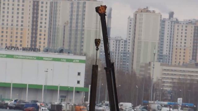Работа на стройке по вдавливанию шпунта ларсена