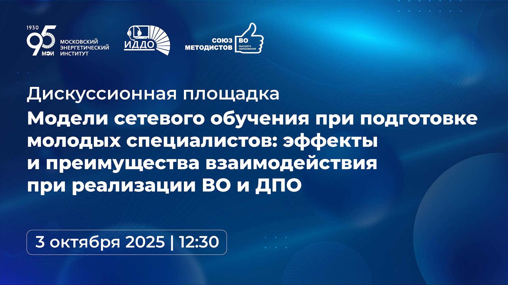 Дискуссионная площадка «Модели сетевого обучения при подготовке молодых специалистов: эффекты и преимущества взаимодействия при реализации ВО и ДПО» Модераторы: Могучев Александр Иванович, проректор ФГБОУ ВО «УГНТУ», Белоусов Сергей Вячеславович, проректор ФГБОУ ВО «НИУ «МЭИ» Выступления: представители образовательных организаций ВО, участники Сетевого энергетического консорциума Могучев Александр Иванович, проректор по учебной работе ФГБОУ ВО «УГНТУ» – «Задачи развития сетевого взаимодействия образовательных организаций и промышленных компаний на примере межвузовского консорциума «Сетевой энергетический университет» Сухих Иван Иванович, начальник управления профессиональной ориентации и организации приема ФГАОУ ВО «ЮУрГУ (НИУ)», Болотина Юлия Олеговна, руководитель департамента по стратегической работе с абитуриентами ЮУРГУ – «Многопрофильная олимпиада «Звезда». Опыт работы в межвузовском пространстве» Рыбина Галина Викторовна, директор института химии и химической технологии ФГБОУ ВО «Ярославский государственный технический университет» «Опыт проведения открытого межрегионального конкурса выпускных квалификационных работ для бакалавров вузов консорциума «Сетевой энергетический университет» Телешова Ирина Георгиевна, доцент, заместитель декана Экономического факультета МГУ им. М.В. Ломоносова, учёный секретарь ФУМО в системе высшего образования по УГСН 38.00.00 «Экономика и управление». Опыт разработки и реализации сетевых образовательных программ: вызовы и направления развития Трофимов Алексей Валентинович, доцент Национального исследовательского университета «МЭИ» «Сетевое использование лабораторного оборудования для образовательного процесса и научных исследований» Азизова Диана Ильгизовна, Альметьевский государственный технологический университет «Высшая школа нефти», «О Региональном студенческом экологическом фестивале «Яшел Адым - Зелёный Шаг» Гайрабеков Ибрагим Гиланиевич, первый проректор-проректор по учебной работе Грозненский государственный нефтяной технический университет им. академика М.Д. Миллионщикова «Опыт реализации сетевых программ в онлайн-режиме» Голиков Алексей Иннокентьевич, проректор по учебно-методической работе, Северо-Восточный федеральный университет имени М.К. Аммосова «Сетевые практики и стажировки для студентов и бакалавров» Куклина Людмила Владимировна, проректор по образовательной деятельности, Российский государственный геологоразведочный университет имени Серго Орджоникидзе «Выпускная квалификационная работа как межвузовский стартап» Форум союза методистов высшего образования «Цифровой вектор в высшем и дополнительном образовании: качество и технологическое лидерство» - это площадка для обсуждения цифровой трансформации образования: от развития электронного обучения до внедрения современных IT-решений и искусственного интеллекта в университетах. Участников ждут реальные кейсы цифровизации и выставка передовых технологий от ведущих российских IT-компаний. Программа включает пленарные заседания, экспертные дискуссии, рабочие группы, экскурсии и выставки — всё для обмена опытом и профессионального взаимодействия.