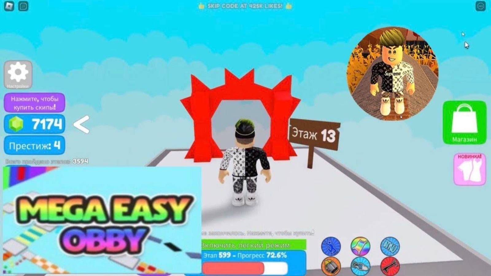 Mega Easy Obby 🌟 825 Stages! Roblox. Супер Легкий Обби 🌟 825 Этапов! Паркур. 13 Этаж + Престиж!