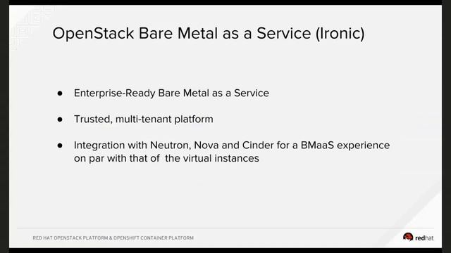 In this briefing, Red Hat's Ramon Acedo Rodriguez presents the strategy, vision and current state of affairs for containers within Red Hat OpenStack Platform. In this session you will learn what role containers play in OpenStack, what we as Red Hat are focusing on, what we already have brought to our customers and what you can be expecting in the future in infrastructure as well as tenant layers. Containers provide a compelling alternative virtualization for modern application development. OpenShift running on OpenStack allows combining the exposition of resources in the infrastructure layer such as network, compute and storage, provided by OpenStack, with in the consumption of these resources from the platform side by OpenShift.