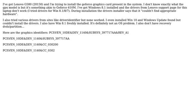 Lenovo G580 (20150)- Geforce drivers from Lenovo won't install