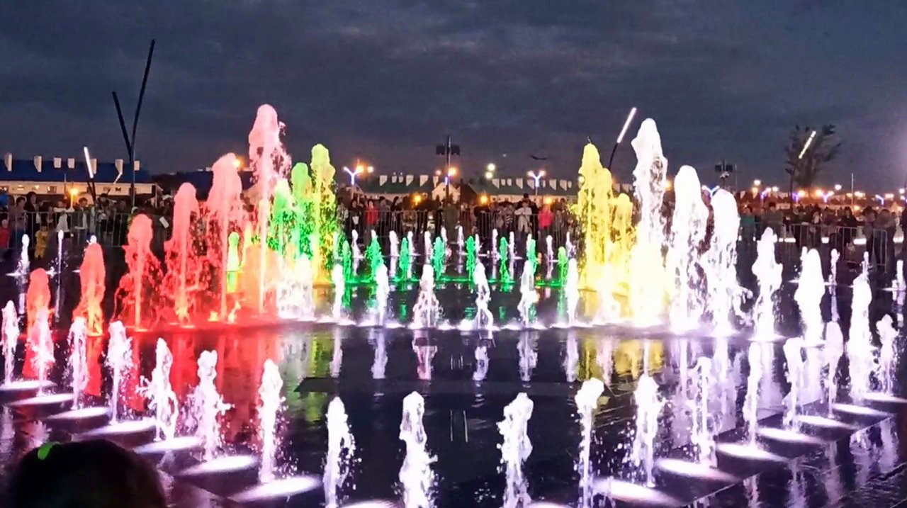 Магнитогорск, парк Притяжение, световой фонтан и столбы на бульваре (11.08.2023)