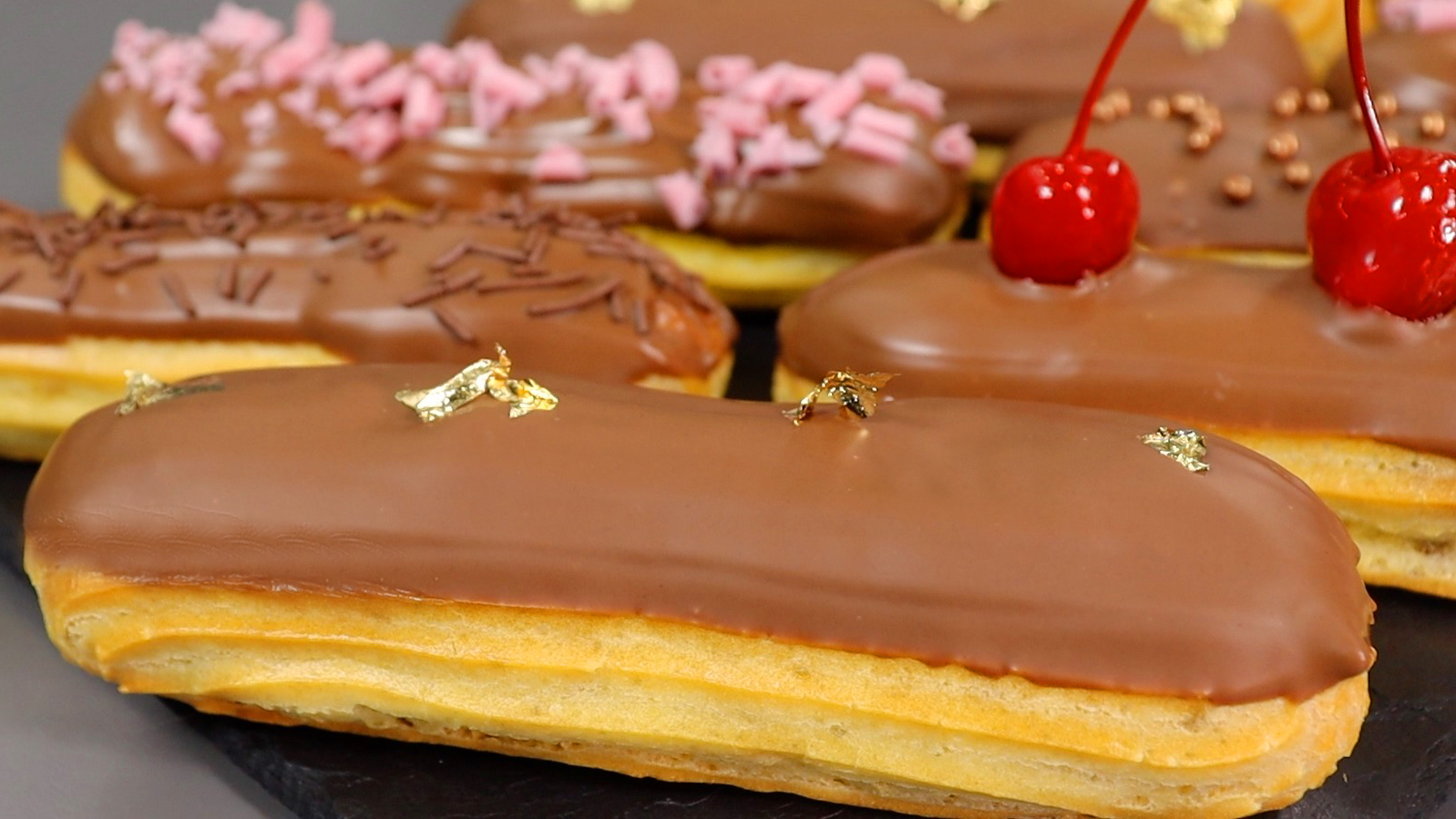 По вашим многочисленным просьбам готовим заварные пирожные. Расскажу, почему эклеры опадают, почему трескаются и как же их правильно отсадить, чтобы этот чудесный и любимый с детства десерт получился у всех с первого раза. ✅ Рецепт приготовления в текстовом варианте - https://dzen.ru/a/Zb4tJOQP62g2oPlM ИНГРЕДИЕНТЫ: Заварное тесто: молоко - 125 мл вода - 125 мл соль - щепотка ванилин - щепотка сахар - 1 ч.л. сливочное масло (комнатной температуры) - 100 г мука - 150 г яйца - 4-5 шт. Крем №1 "Маскарпоне" маскарпоне - 250 г сливки (от 30%) - 125 мл сахарная пудра - 35 г Крем №2 "Шоколадный" маскарпоне - 250 г сливки (от 30%) - 125 мл сахарная пудра - 35 г какао - 2 ст.л. Крем №3 "Сливочный" сливочное масло 180 г сгущённое молоко - 7 ст.л. Декор: шоколад молочный - 300 г Выпекаем эклеры в заранее нагретой до 190°С духовке 10 минут. Затем температуру уменьшаем до 170°С и выпекаем до золотистого цвета, до нужной нам колировки. У меня занимает 20-25 минут. Выпекаем только при режиме верх-низ, конвекция здесь не нужна! #заварные #заварныепирожные #эклеры #профитроли #заварноетесто #десерты #этопросто Весь музыкальный контент, использующийся в видео на данном канале, размещен на основании лицензии Creative Commons 4.0 (https://creativecommons.org/licenses/by/4.0/) Музыка в видео: Heart Break Vibe Tracks