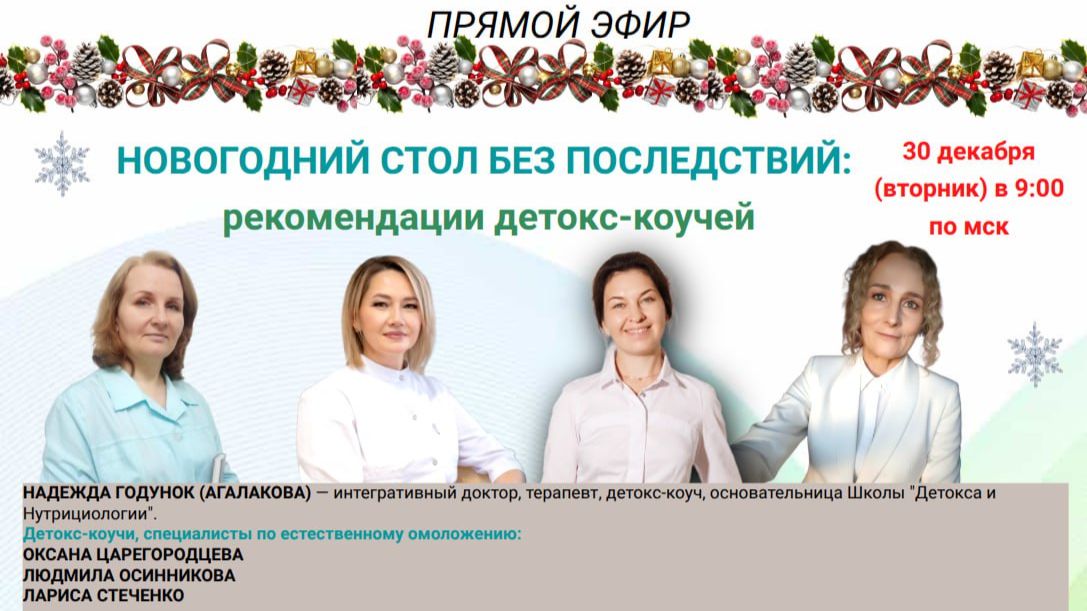 Как встретить 2026-й так, чтобы 1-го января проснуться с ясной головой, а не с отёками и изжогой? Наши детокс-коучи, выпускники Школы доктора Агалакова, поделятся секретами «безопасного» праздника: 🎊 Прощай, майонез: чем заменить? 🎊 Правило детокс-тарелки: Что и в какой последовательности съесть, чтобы не было вздутия. 🎊 План на 1 января: Чем занять себя 1 января, вместо «доедания салатов у телевизора», чтобы энергия била ключом. 🎉 Ждём вас на эфире на каналах: 🔸Телеграм (https://t.me/doctoragalakov) 🔹YouTube (https://youtube.com/@DoctorAgalakov) 🔸ВКонтакте (https://m.vk.com/agalakovakadem) 🔹RuTube (https://home.strannik-j.org/channel/48947879/) 🔸ВК-Канал Н.В. Агалаковой (https://vk.com/nadygodunok)