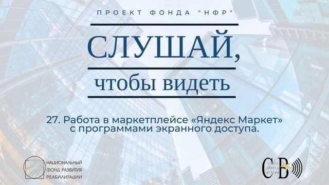 Это 27-й подкаст проекта «Слушай, чтобы видеть», который создан для незрячих пользователей электронных сервисов. Выпуск посвящен обзору маркетплейса «Яндекс Маркет». Всеволод Попов в подкасте продемонстрировал iOS приложение, показал все основные возможности сервиса (обзор товаров по категориям, поиск товаров, просмотр информации, отзывов о товаре, добавление в корзину). Информационно-просветительские подкасты рассчитаны на аудиторию незрячих пользователей электронной техники. Проект реализует «Национальный фонд развития реабилитации».