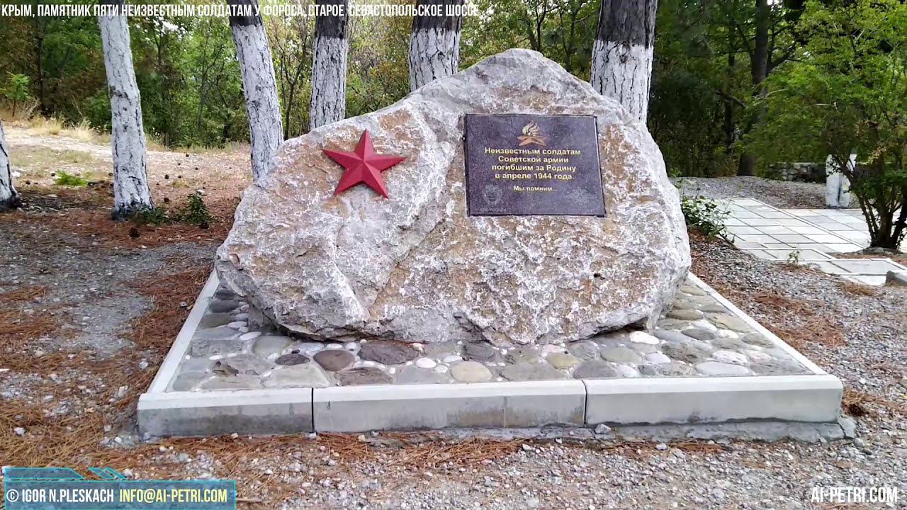 #крым #памятниксолдатам #староесевастопольскоешоссе #ойзалив #крым2020 По дороге от Алупки к Форосской церкви по старому севастопольскому шоссе есть несколько памятных мест времен Великой Отечественной войны. В этих местах с фашистами боролись крымские партизаны и советские солдаты. Это один из памятников - памятник пяти неизвестным солдатам недалеко от выезда к Форосской церкви Будем признательны за помощь нашему каналу https://www.donationalerts.com/r/aipetri НАШИ ПРОЕКТЫ: 1️⃣ АЙ-ПЕТРИ - Южный берег Крыма - http://ai-petri.com 2️⃣ COMPAS Info - https://compas.info 3️⃣ ФОРУМ Крыма - http://ai-petri.com/forum/ 4️⃣ МЫ-ВОЛОНТЕРЫ - http:/мы-волонтеры.рф МЫ В СОЦИАЛЬНЫХ СЕТЯХ: ✔️ Фейсбук - https://www.facebook.com/geoniks ✔️ "Любимый Крым" наша группа в Facebook - https://www.facebook.com/groups/aipetri/ ✔️ ВКонтакте - https://vk.com/george_nick ✔️ Twitter - https://vk.com/george_nick E-MAIL: info@ai-petri.com