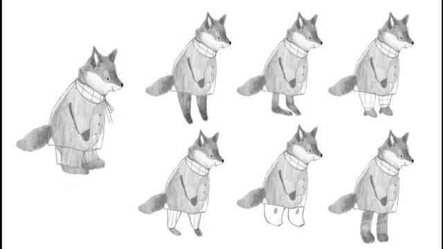 Дизайн персонажа: лисичка цветными карандашами. Материалы: Бумага, цветные карандаши, просто карандаш, ластик