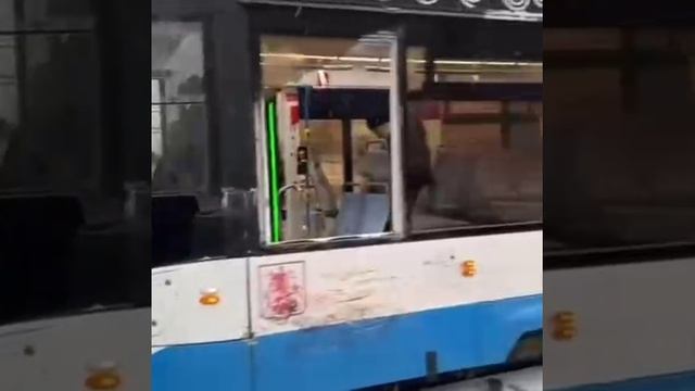 Москва. Грузовик протаранил трамвай у «Войковской» Никто не пострадал, но некоторым пассажирам пришлось выпрыгивать из салона.
