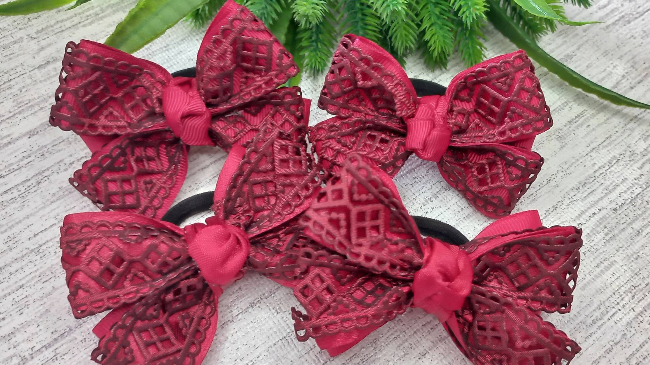 Бордовые бантики с декоративной лентой в школу Делаем сами