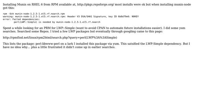 Can someone explain why LWP::Simple is satisfied by perl-libwww-perl? Helpful? Please support me on Patreon: https://www.patreon.com/roelvandepaar With thanks & praise to God, and with thanks to the many people who have made this project possible! | Content (except music & images) licensed under CC BY-SA https://meta.stackexchange.com/help/licensing | Music: https://www.bensound.com/licensing | Images: https://stocksnap.io/license & others | With thanks to user user1686 (superuser.com/users/1686), user Gray Race (superuser.com/users/93724), and the Stack Exchange Network (superuser.com/questions/383232). Trademarks are property of their respective owners. Disclaimer: All information is provided "AS IS" without warranty of any kind. You are responsible for your own actions. Please contact me if anything is amiss at Roel D.OT VandePaar A.T gmail.com