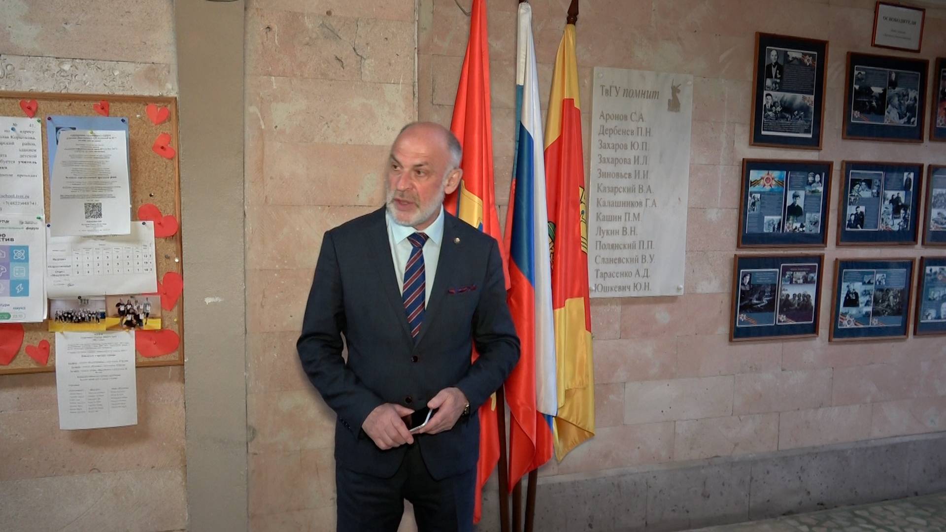 Сегодня была открыта памятная доска в честь участников Великой Отечественной войны, которые в послевоенные годы стали преподавателями и сотрудниками института педагогического образования и социальных технологий (ИПОСТ) и факультета физической культуры, базирующихся в корпусе 9. На торжественной церемонии открытия мемориальной доски директор ИПОСТ, академик Российской академии образования, председатель Общественной палаты Тверской области Игорь Давыдович Лельчицкий, обращаясь к собравшимся студентам, попросил их не забывать о простой истине: «Если бы не подвиг тех, кто указан на этой памятной доске, нас с вами, всех нас сейчас не было бы. Просто не было бы». Проректор по общим вопросам Елена Николаевна Васильева так сформулировала концепцию проекта открытия мемориальных досок: «Человек жив, покуда жива память о нем. Поэтому ТвГУ помнит и передает эту память вам, молодому поколению!». Разумеется, свое слово на сегодняшней церемонии сказал декан факультета физической культуры Сергей Владимирович Комин. Имени его отца, Владимира Васильевича Комина, нет на памятной доске в корпусе 9, но оно есть на доске исторического факультета. В годы Великой Отечественной войны Владимир Васильевич возглавлял партизанский отряд, а затем, будучи ректором, внес решающий вклад в присвоение Калининскому педагогическому институту статуса университета. Сергей Владимирович призвал молодежь равняться на тех, чьи имена выбиты на доске: «Не просто осваивайте профессию, учитесь патриотизму, стойкости, благодарности тем, кто что-то сделал для вас!» Доцент кафедры социальной работы и педагогики Ольга Николаевна Борисова, говоря о поколении фронтовиков, отметила их беспримерную силу духа, верность Родине и подвижничество: «Словно бы о них сказал когда-то Владимир Маяковский, что "гвозди б делать из этих людей, крепче б не было в мире гвоздей"». Профессор кафедры дошкольной педагогики и психологии Сергей Николаевич Махновец подчеркнул, что «XXI век с точки зрения психологии — это век межличностных отношений. Гармоничные отношения, гармоничное будущее можно построить только тогда, когда люди извлекают правильные уроки из прошлого». #День_Победы_ТвГУ #ТвГУ_помнит #ИПОСТ_ТвГУ #Спортфак_ТвГУ