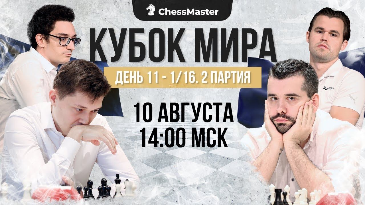 Получай дополнительный фрибет 5 000 и возможность выиграть доску с автографом Магнуса - регистрируйся на Winline с промокодом CHECKMATE и вноси депозит на любую сумму: https://winline.tv/chess Трансляция самого интересного шахматного турнира этого года - Кубок Мира! Турнир проходит в Баку с 30 июля по 24 августа. Комментируют: Легенда наших стримов GM Фаррух Аманатов, а также экс 3-х кратный чемпион мира по блицу, участник этого кубка мира GM Александр Грищук! Следите за прямыми трансляциями на канале ChessMaster! Оперативные новости с кубка мира в нашем телеграм: https://t.me/ChessMaestro Научись играть в шахматы быстро и в отличной компании. Годовой курс «Школа победителей» ждет всех, кто хочет рост рейтинга и 1-й разряд — https://school.chessmaestro.ru/winners Донат - https://www.donationalerts.com/r/chessmaster https://school.chessmaestro.ru — Обучение шахматам с кайфом Начало трансляций в 14:00 МСК Подписаться на канал https://goo.gl/nY2kmn ♕ - http://chessmaestro.ru/21mistakeyoutube книга 21 критическая ошибка в шахматах - получите Бесплатно Наши проекты - https://taplink.cc/chessmaster #КубокМира2023 #ChessMaster #шахматы