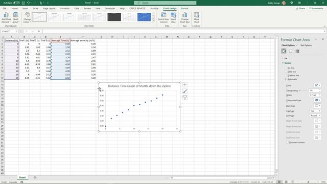 Excel in Physics - 5 - Graphing - Scatter Plot of Distance-Time