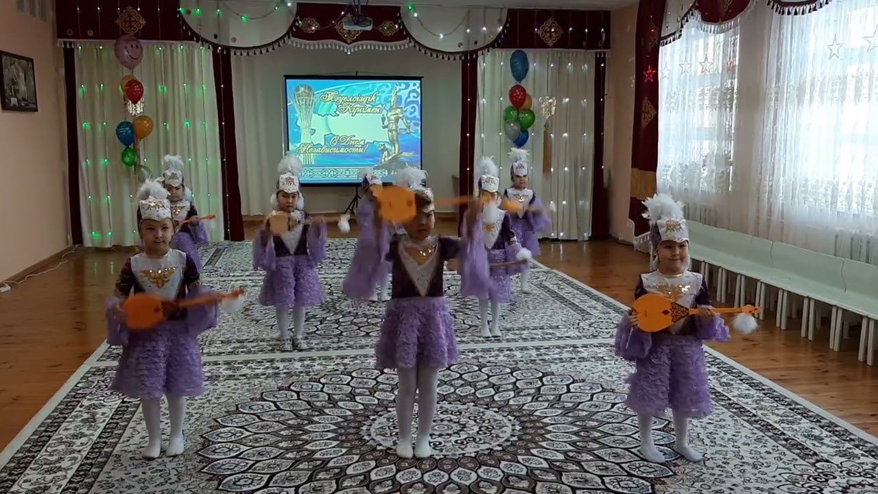 Дети прешкольной группы № 2, 5 лет, ГККП «Ясли-сад «Мирас» КГУ «Отдел образования Кызылжарского района» КГУ «Управления образования акимата Северо-Казахстанской области управления образования акимата Северо-Казахстанской области, Республика Казахстан Северо-Казахстанская область, Кызылжарский район, а. Бескөл, руководитель Митронина Валентина Владимировна Танец «Касиетте домбыра»