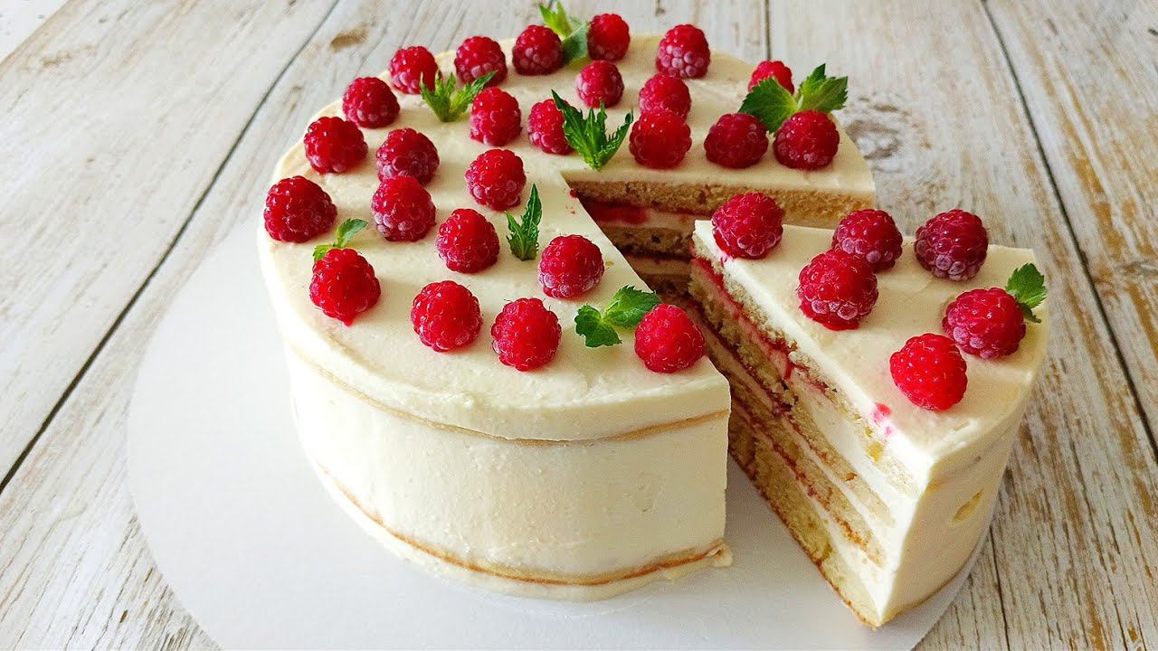 Торт на сковороде с творожным кремом и ягодным джемом!
