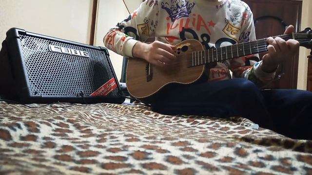 Как звучит гиталеле с подключением к гитарному усилителю Roland Cube Street Ex и без.