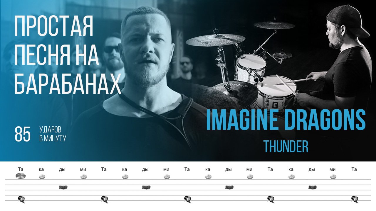 Простой вариант композиции Imagine Dragons - Thunder, темп 85 ударов в минуту. Это упрощенная версия песни, отлично подойдет для начинающих барабанщиков. В песне используется коннакол (обозначение сверху), а ноты заменены на изображение барабанов для простоты. ★ ОБУЧАЮЩАЯ ПЛАТФОРМА ДЛЯ БАРАБАНЩИКОВ - https://dolgovdrums.ru/ Я в Instagram - https://www.instagram.com/dolgovdrums/ Я в VK - https://vk.com/dolgovdrums Я в YouTube - https://www.youtube.com/c/dolgovdrums Я в Дзен - https://zen.yandex.ru/id/604bb0fc15a66b29000ceb77 Я в TikTok - https://www.tiktok.com/@dolgovdrums