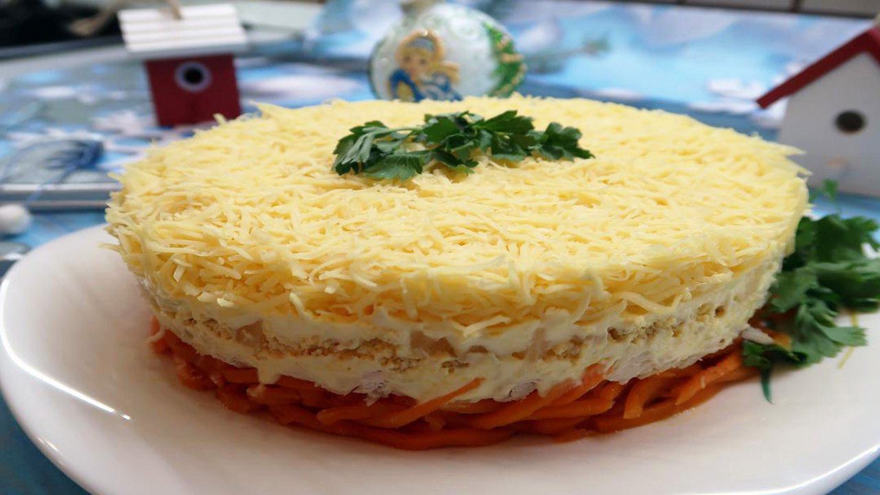 Вкуснейший слоёный салат с курицей и ананасами. Оригинальный салат на праздничный стол