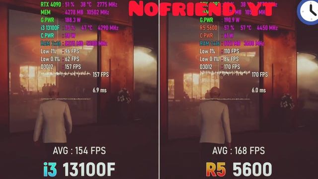 i3 13100F vs Ryzen 5 5600 - Test game Hitman