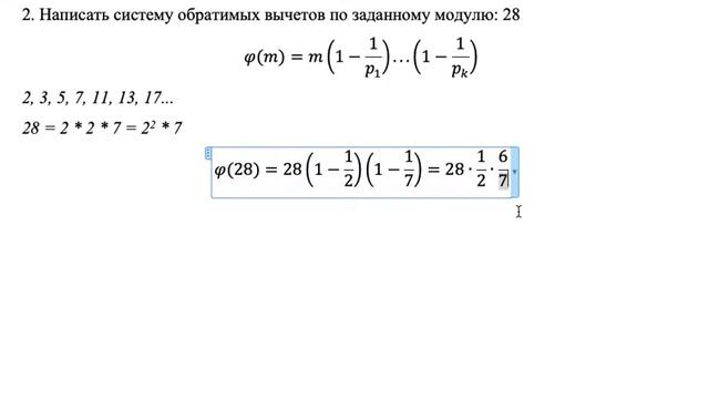 Написать систему обратимых вычетов по заданному модулю