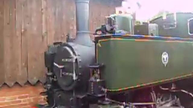 The Locomotive "Tom Rolt" going into the engine shed in Tywyn.