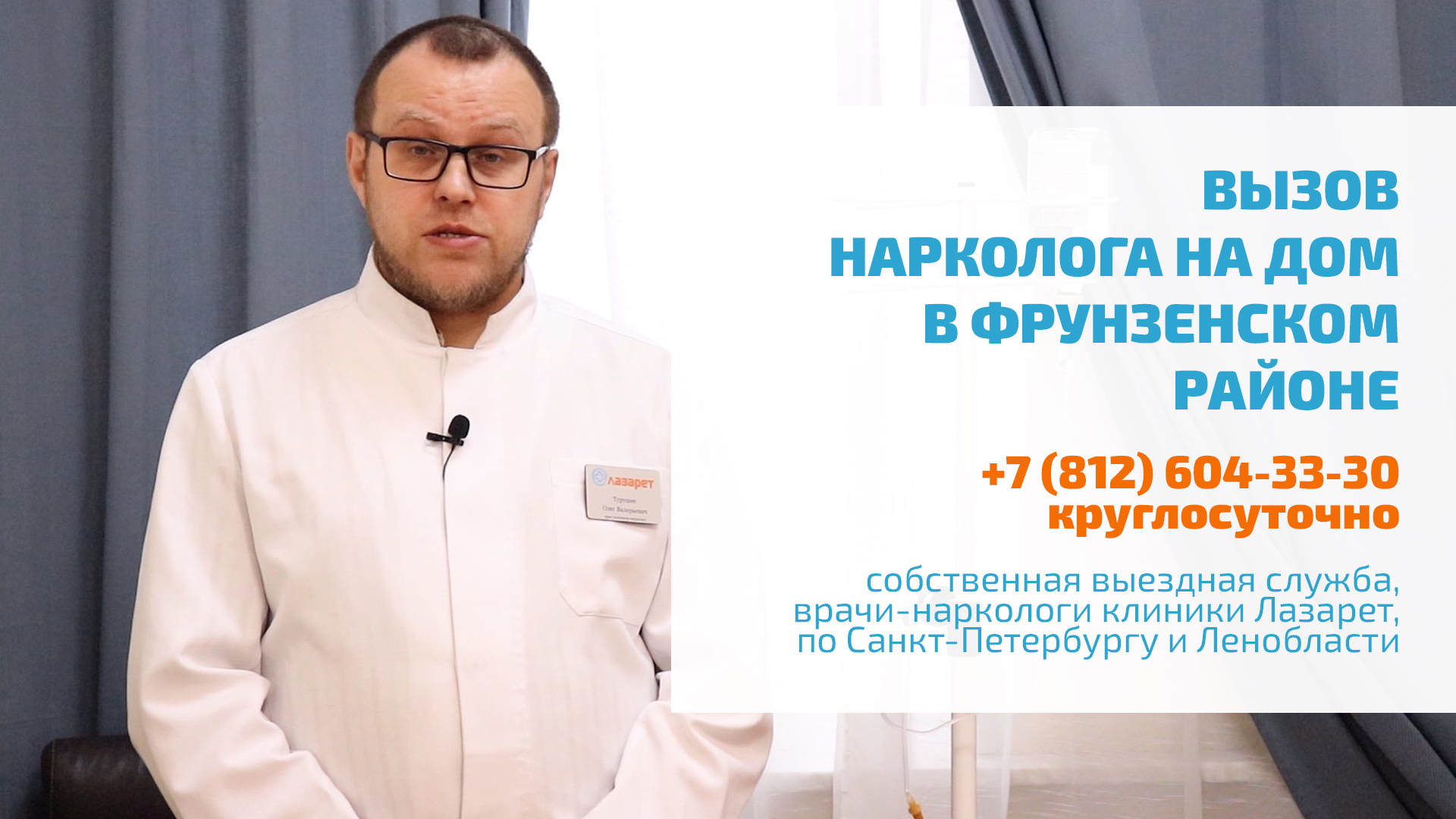 #ВЫВОДИЗЗАПОЯ #ВЫЗОВНАРКОЛОГА #ПОХМЕЛЬЕ https://lazaretspb.ru/vyvod-iz-zapoya/ Проводим вывод из запоя в Фрунзенском районе. Вызвать нарколога на дом в СПб можно круглосуточно. Прерывание запоя и снятие похмелья проводятся на анонимной основе, без постановки на учет. У нас собственная выездная служба, в которой работают врачи-наркологи с опытом работы от 15 лет. 00:00 • Вывод из запоя на дому в Фрунзенском районе 00:40 • Вызов нарколога на дом в Фрунзенском районе 01:30 • Снятие похмелья, анонимно и круглосуточно Мы - одна из старейших частных клиник Санкт-Петербурга. На сегодняшний день клиника Лазарет работает по направлениям психиатрии, наркологии. психотерапии и реабилитации. ? ЗАПИСЬ, КОНСУЛЬТАЦИЯ МЫ РАБОТАЕМ КРУГЛОСУТОЧНО, БЕЗ ВЫХОДНЫХ Если у Вас возникли вопросы о вариантах лечения психических расстройств и зависимостей, наши операторы ответят на них. Звоните — мы работаем круглосуточно, в том числе в выходные и праздничные дни. +7 (812) 604-33-30 8 (800) 300-64-39 ? ГОСПИТАЛИЗАЦИЯ В СТАЦИОНАР ИНОГОРОДНИМ, ЖИТЕЛЯМ БЛИЖНЕГО И ДАЛЬНЕГО ЗАРУБЕЖЬЯ Для иногородних, жителей ближнего и дальнего зарубежья, желающих пройти полноценное лечение в психиатрическом или наркологическом стационаре нашей клиники, возможна консультация по Skype, WhatsApp, Viber, Telegram. Напишите нам на адрес электронный почты, указав в письме контактную информацию, причину обращения, удобное для Вас время звонка. info@lazaretspb.ru ? КЛИНИКА ЛАЗАРЕТ — ОСОЗНАННЫЙ ВЫБОР ПСИХИАТРИЯ, ПСИХОТЕРАПИЯ, НАРКОЛОГИЯ И ПСИХОЛОГИЧЕСКАЯ ПОМОЩЬ Клиника Лазарет — одна из старейших клиник Санкт-Петербурга, специализирующаяся на помощи людям с легкими, пограничными и тяжелыми расстройствами психики, различными зависимостями. Также мы помогаем родственникам пациентов на всех этапах лечения — от мотивации к прохождению полноценного лечения, до ресоциализации — момента возвращения человека в общество и в семью, требующего специализированной психологической помощи и коррекции поведения. https://lazaretspb.ru https://vk.com/klinikalazaret