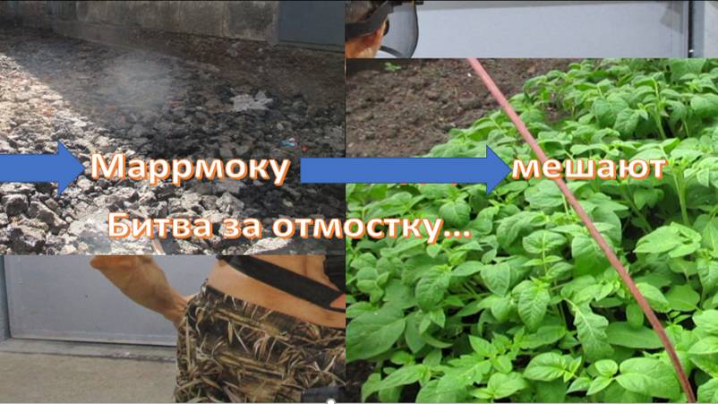 Работа по отмостке немного продвинулась. Но, опять Маррмоку мешали помидоры, пора высаживать