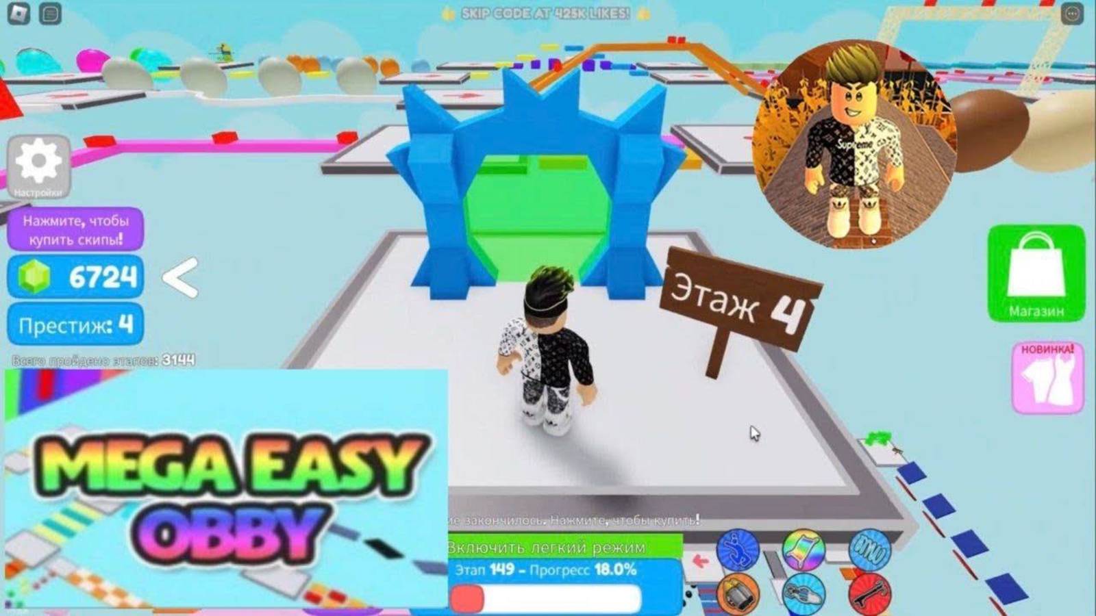 Mega Easy Obby 🌟 825 Stages! Roblox. Супер Легкий Обби 🌟 825 Этапов! Паркур. 4 Этаж + Престиж!