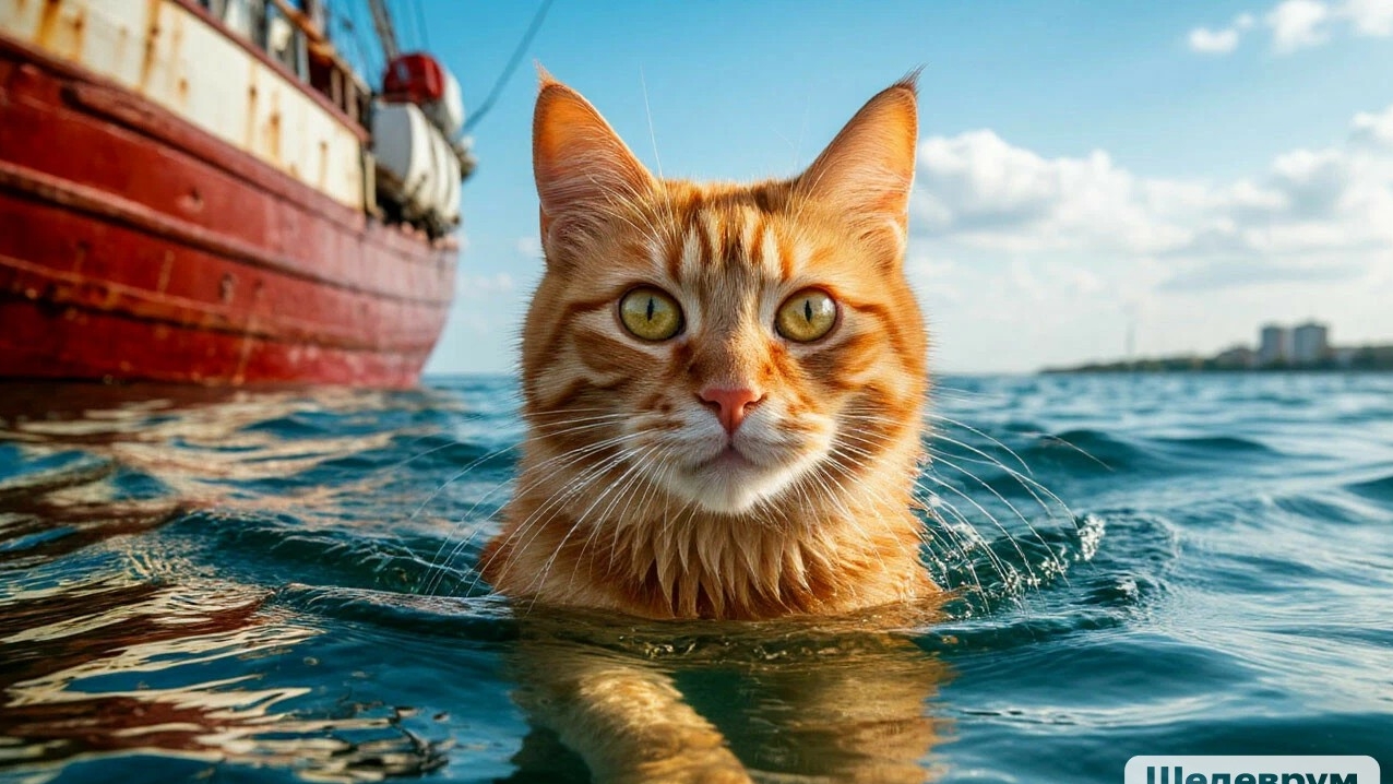 Классное видео о рыжем коте-223 выпуск: Гуляя по набережной рыжий кот забрёл на один из кораблей,какое его было сначала удивление, но потом, когда корабль всё дальше отчаливал от берега, кот был в страхе и бросился в море... И он доплыл до берега! Немного полежав, так как он устал плыть,отдохнув немного,стал себя вылизовать.