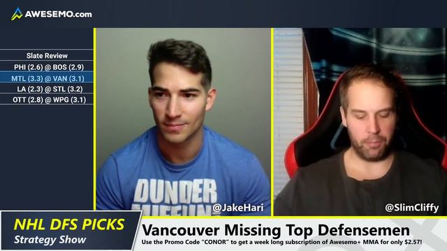 Jake Hari & Michael Clifford discuss the best NHL DFS picks and strategy for daily fantasy hockey on DraftKings and FanDuel (Saturday 1/23/21). Awesemo’s NHL DFS Strategy & Tools NHL DFS Primer: https://www.awesemo.com/nhl/fantasy-n... Using MLB DFS To Play NHL DFS: https://www.awesemo.com/nhl/using-mlb... NHL Live Blog: https://www.awesemo.com/nhl/nhl-dfs-l... How To Win DFS Tournaments: https://www.awesemo.com/gameplan/how-... How To Use NHL Fantasy Cruncher https://youtu.be/E5_H8sJ6n-g NHL Projections: https://www.awesemo.com/nhl/dfs-proje... NHL Rankings: https://www.awesemo.com/nhl/awesemos-... NHL Ownership Projections: https://www.awesemo.com/nhl/nhl-dfs-o... NHL Top Stacks Tool: https://www.awesemo.com/nhl/nhl-dfs-t... #NHLDFS #DraftKings #FanDuel #Picks #Strategy #Lineups Follow us on Twitter | @Awesemo_Com | http://bit.ly/AwesemoTwitter Instagram | @Awesemo_Com | http://bit.ly/AwesemoIG Facebook | @AwesemoCom | http://bit.ly/AwesemoFb Facebook Group | http://bit.ly/AwesemoFbGroup Apple Podcasts | http://bit.ly/AwesemoPod SoundCloud | http://bit.ly/AwesemoSoundCloud Spotify | https://spoti.fi/3d2bXik