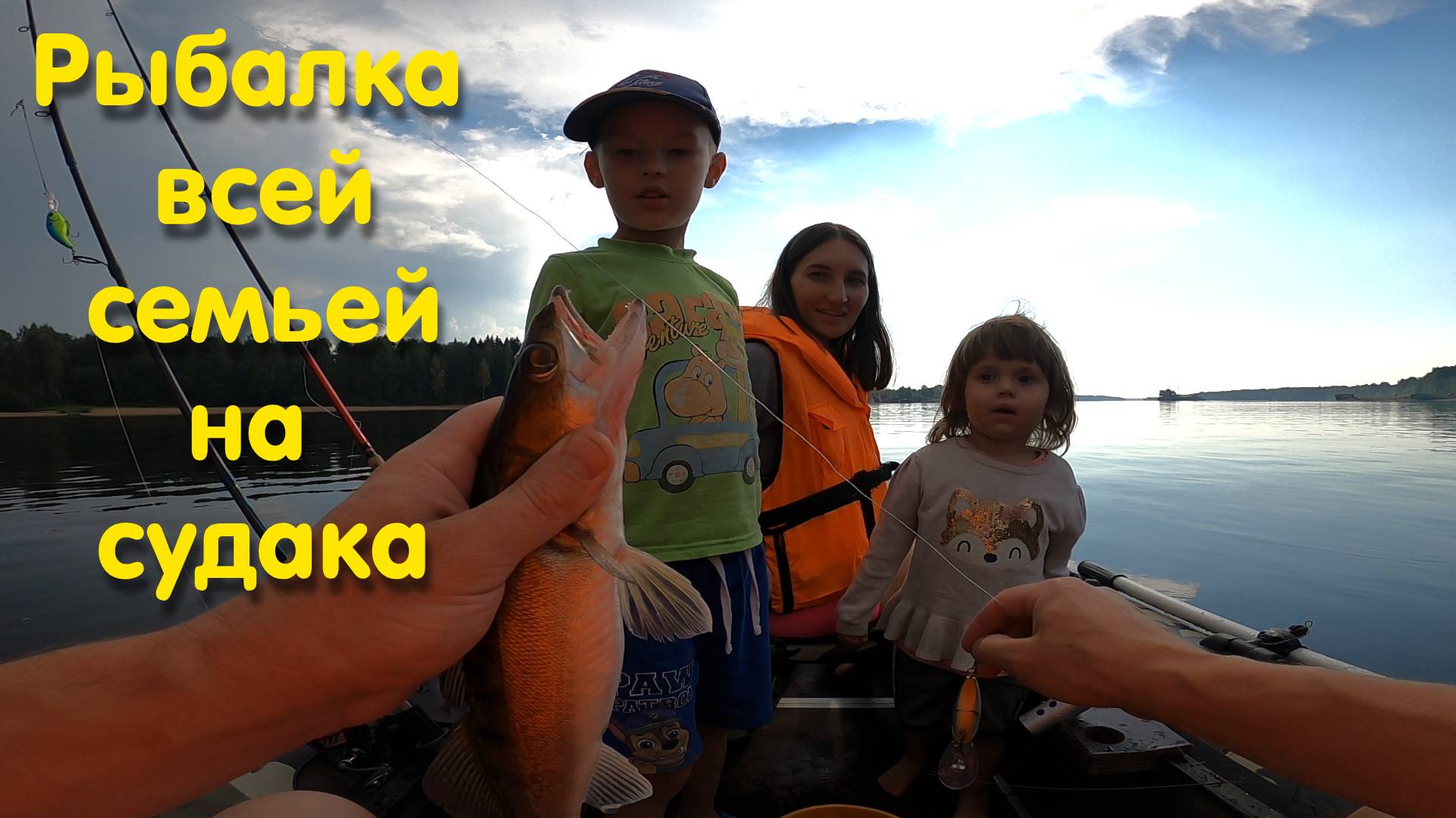 Рыбалка с семьей. Поймали 3 судака и окуня. Первая рыбалка Ники