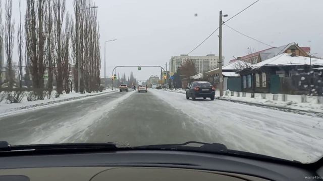 идёт снег гололёд едим в город . город Шадринск