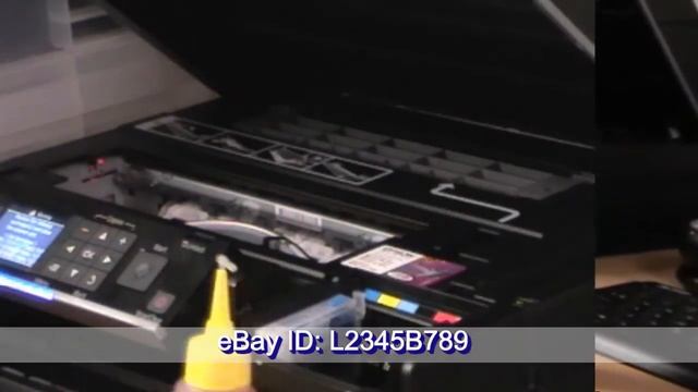 Refillable cartridge installation and test on Epson printer. All brand names and trademarks are properties of their respective holders and are referred to here for descriptive purpose only.