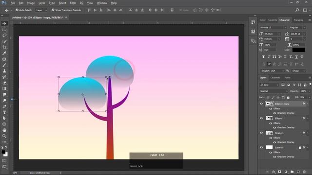 #Photoshop Tutorial - How to draw Tree with Shape tool & Gradient Colour Easily.