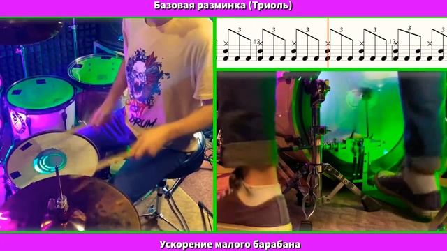 Базовая разминка в триоли двойной педалью. Ускоряем малый барабан. Учимся играть на барабанах.
