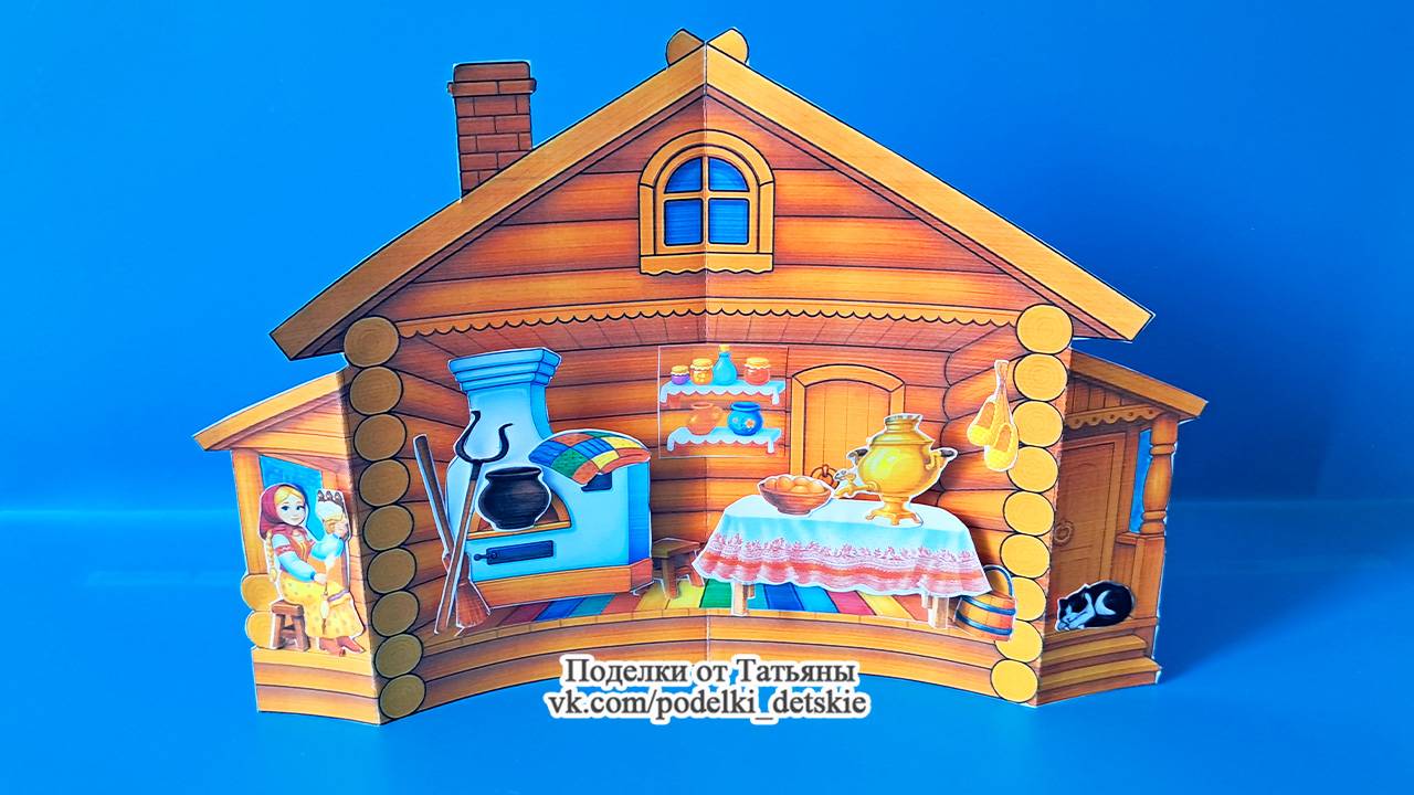 Макет "Убранство русской избы". Поделка для детей из бумаги. Русская изба внутри.