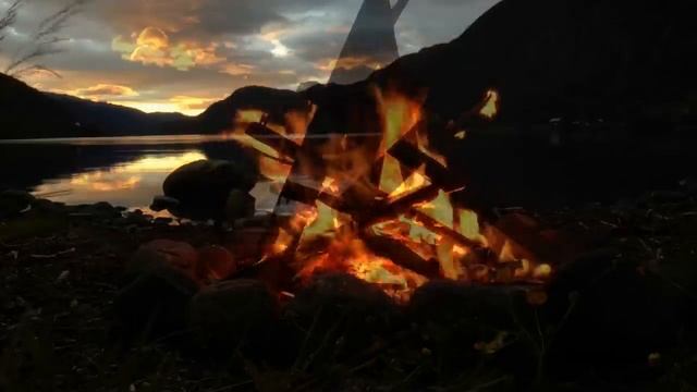 Костер на природе возле озера, тихий вечер, треск дров, звуки природы