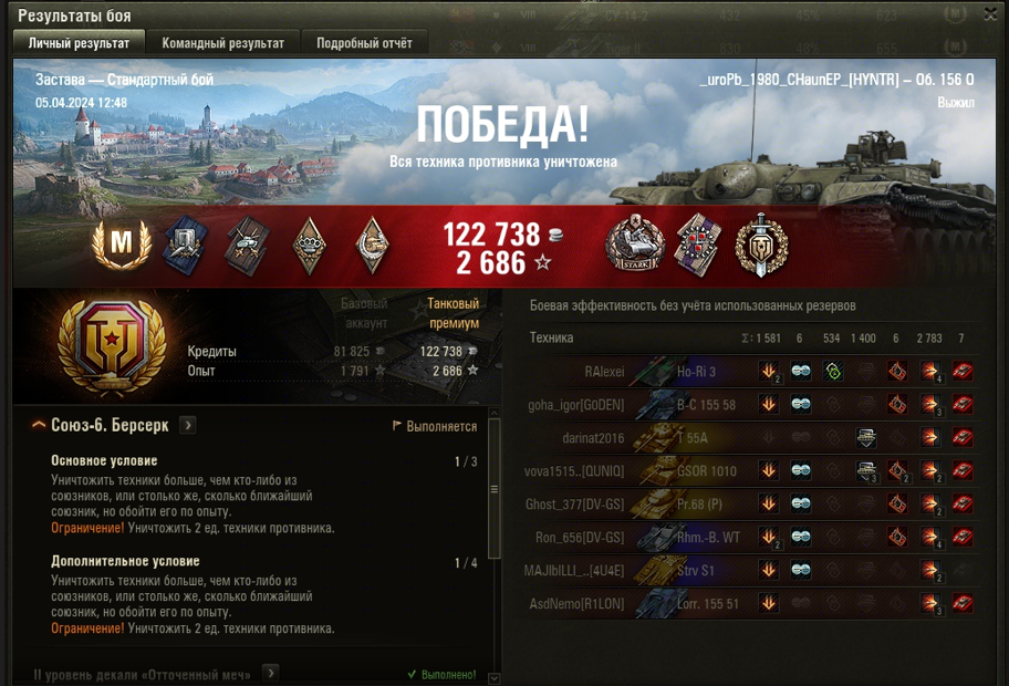 ЗАСТАВА МАСТЕР на Объект 156 О ОПЫТ: 1628 СУММАРНЫЙ УРОН: 4898 медаль СТАРКА ВОИН
