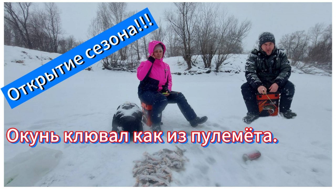 Открытие сезона. Окунь клюет как из пулемета! Супруга первый раз на зимней рыбалки!