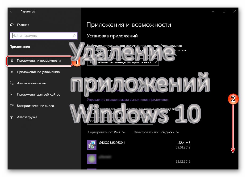 Удаление приложение Windows 10