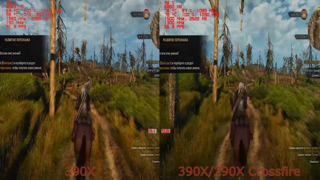 The Witcher 3 4К 390X VS 390X/290Х Crossfire FX-9590 Прирост второй видеокарты