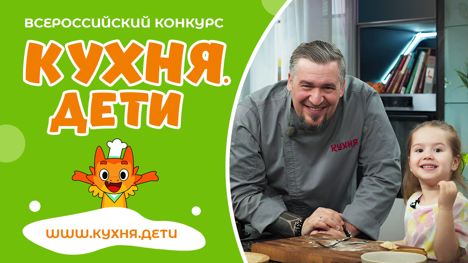 Конкурс Кухня.Дети – это возможность для всех юных кулинаров проявить себя и получить бесценный опыт. Мы ищем талантливых ребят от 6 до 14 лет, которые любят готовить, экспериментировать со вкусами и делиться своими кулинарными шедеврами! Трех победителей конкурса мы привезем в Москву. И в настоящей телевизионной студии снимем с ними программу, которую потом покажем в эфире телеканала «КУХНЯ». Приглашаем к участию всех юных шефов России! Подробности на сайте www.кухня.дети Организаторы: КУХНЯ.РФ, телеканал КУХНЯ Партнёр: Детское радио