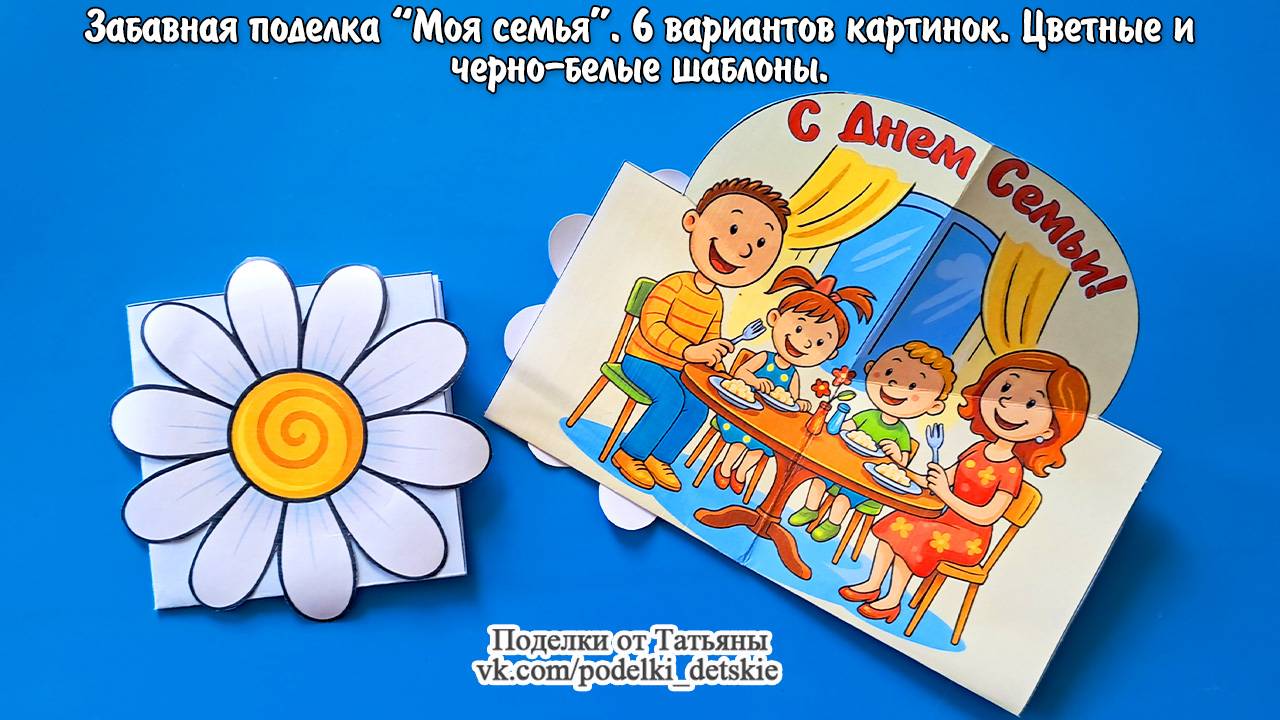 Забавная детская поделка ко Дню семьи, любви и верности в сад или школу. Сделайте своими руками вместе с детьми! 6 вариантов картинок на ваш выбор (цветные и черно-белые). Если вам понравилось видео - ставьте ЛАЙК и обязательно подписывайтесь на мой канал, у меня ещё много интересных идей для Вас!